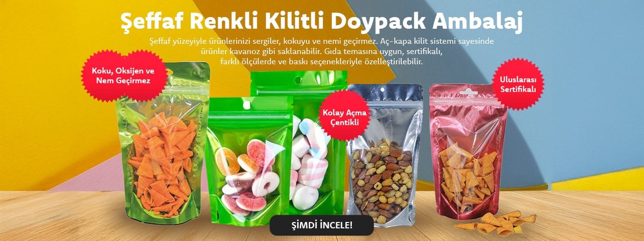 Şeffaf doypack ambalajlar, içindeki ürünleri net bir şekilde sergileyerek müşterilerin ilgisini çeker. Gıda ürünlerinden kozmetiklere kadar birçok alanda kullanılan şeffaf ambalajlarımız, dayanıklılığı ve kilitli yapısıyla tazeliği koruma garantisi sunar. Hafif ve işlevsel tasarımı sayesinde hem saklama hem de taşıma kolaylığı sağlar.