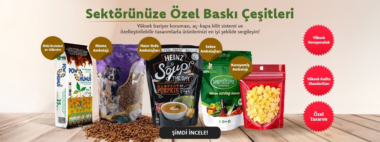 Doypack ambalaj, ürünlerinizi koruma, sergileme ve taşımada sunduğu üstün özellikleriyle modern paketleme dünyasının vazgeçilmezi haline gelmiştir. DOYPACK olarak, her ihtiyaca uygun yüksek kaliteli ve dayanıklı ambalaj çözümleri üretiyoruz. Çevre dostu malzemelerle modern tesislerimizde ürettiğimiz ambalajlarımız, sektörünüzün gerekliliklerini karşılayacak şekilde tasarlanmıştır.